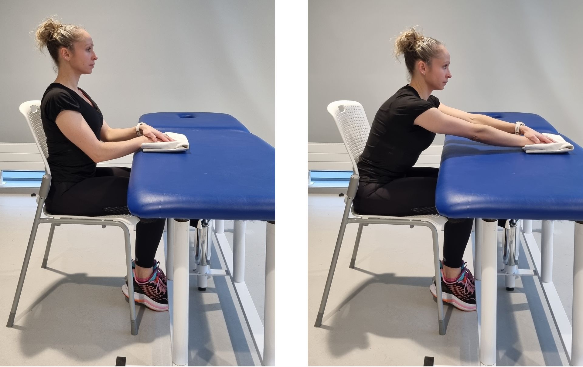 2) Place your operated arm on top of the cloth (as shown in the potos), and with full assistance form your non-operated arm, slide it forwards and backwards.